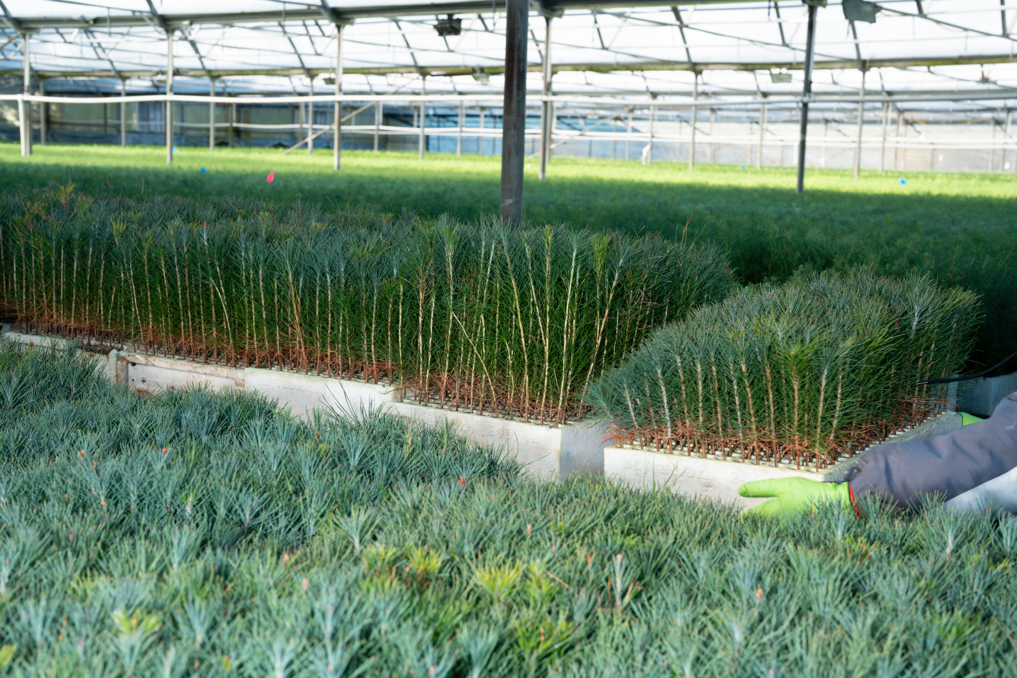 Grant Canary checking on seedling growth at Silvaseed.